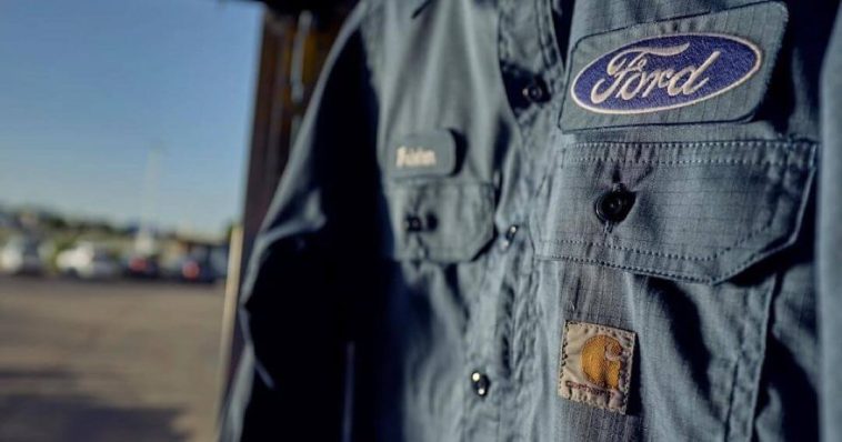 Ford’s design team spent time inside Carhartt’s downtown Detroit store studying the details that made the brand famous. Heavy fabrics. Reinforced stitching. Functional elements meant to survive years of abuse on real job sites.