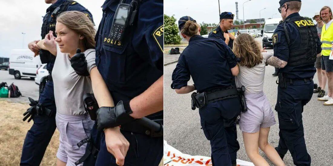 “Today, for the third consecutive day, young advocates from @tatillbakaframtiden have stopped oil tankers in the Malmö oil port. The climate emergency is already a matter of survival for innumerable individuals. We opt to not be observers but to physically interrupt the fossil fuel structure. We are recapturing the future,” During the protest, Thunberg posted on Instagram.