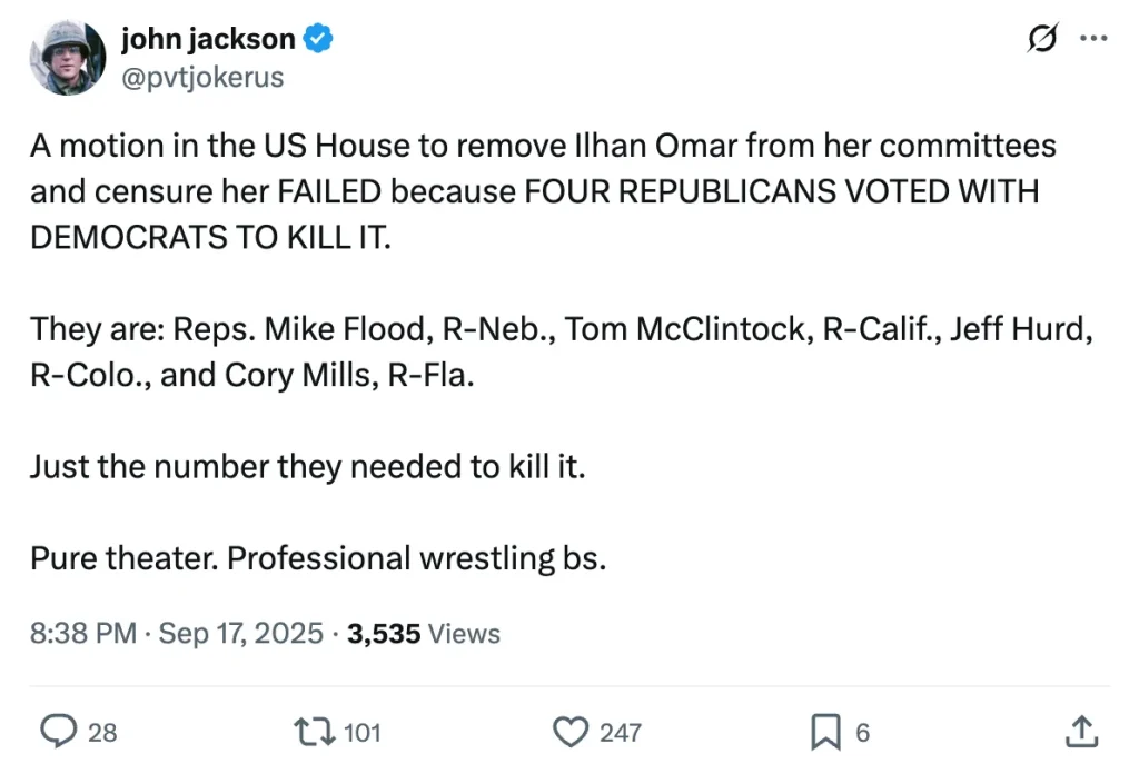 After the vote, McClintock admitted Omar’s words were “vile” but argued that defending free speech—even the speech we hate—is part of what makes America free.