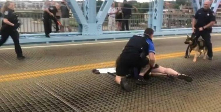 A wild scene erupted last week on the John A. Roebling Suspension Bridge, which connects Covington, Kentucky to Cincinnati, Ohio, as left-wing protesters clashed with law enforcement in a dramatic standoff that has since gone viral.