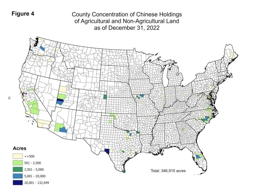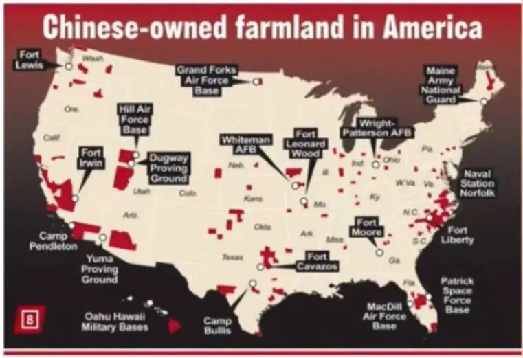 Chinese owned farmland and forests near US military bases.