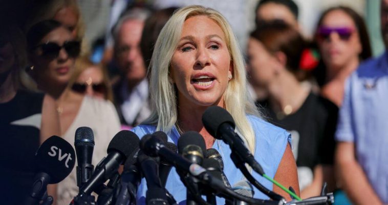 Lawmakers expect a vote on the bill today, triggered by a discharge petition from Massie and Khanna that hit the necessary 218 signatures. It follows a similar event the group held in September demanding the same disclosures. That earlier press conference also gained national attention — but today, MTG took things in an entirely different direction.