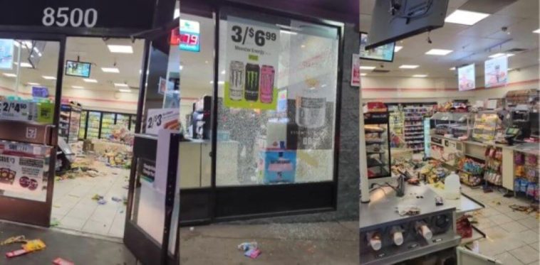 In a brazen act of lawlessness, dozens of juveniles targeted a 7-Eleven near Beverly Hills, California, on Friday night, raising concerns about the state’s lenient crime policies. The incident, which occurred at the 8500 block of W Olympic Blvd, saw a group of nearly 50 youths swarm the convenience store, leaving it ransacked and in disarray. The group fled with armfuls of goods before law enforcement arrived.