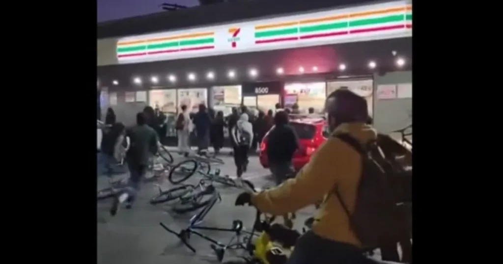 According to reports from KTLA, the group of juveniles, estimated to be between the ages of 12 and 15, arrived on bicycles and swiftly entered the 7-Eleven. Once inside, they began seizing various items, including junk food, cigarettes, drinks, and other merchandise. The coordinated effort allowed the youths to stuff their pockets with as many items as possible before quickly fleeing the scene.