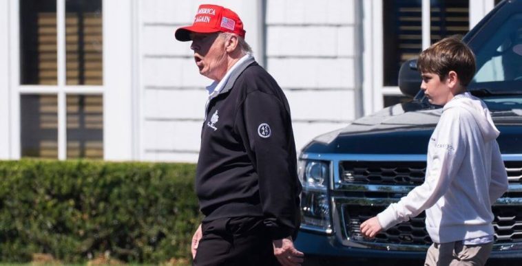 Trump was seen leaving the White House dressed in his usual golf attire — black pants, a black pullover, golf shoes, and his trademark white “USA” hat. He traveled in an SUV and arrived at Trump National Golf Club in Sterling around 10 a.m., according to the New York Post.